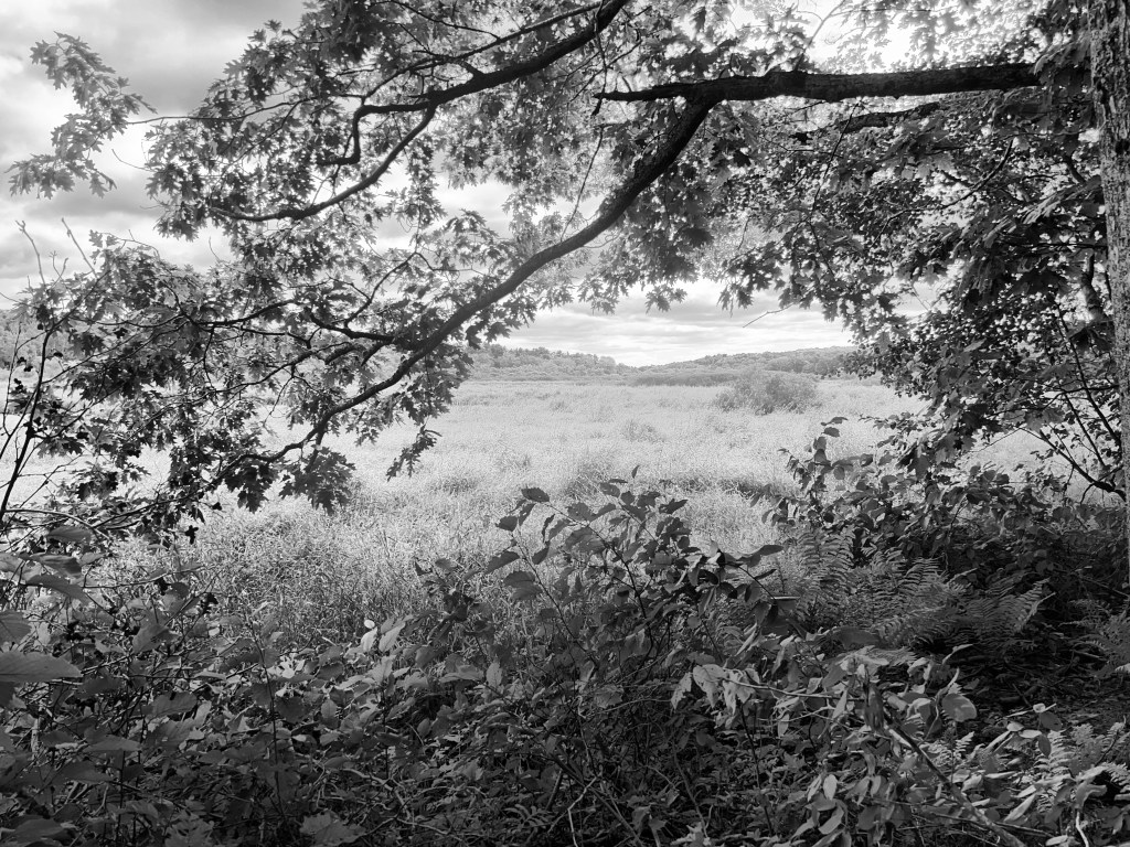 A quick stop on a bike ride with my three year old today to look out through the trees towards the river and marsh land.