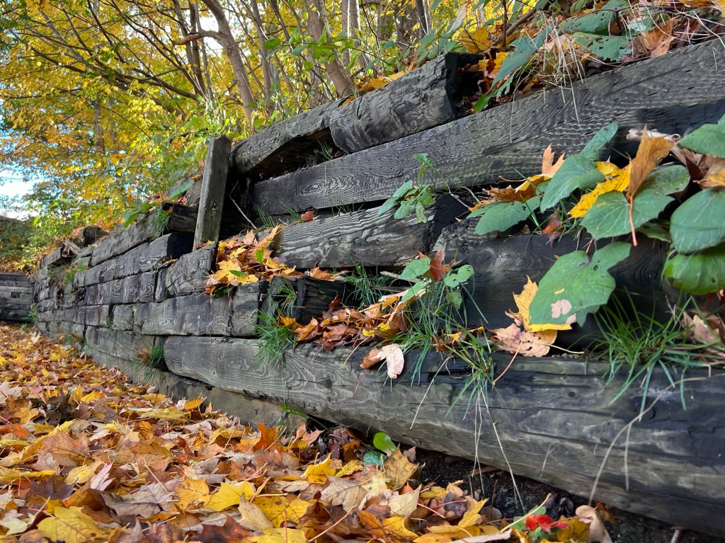 I’ve parked in this lot often and never really noticed the wall in the back corner before. Maybe it was the colourful leaves all around that drew me to it today.