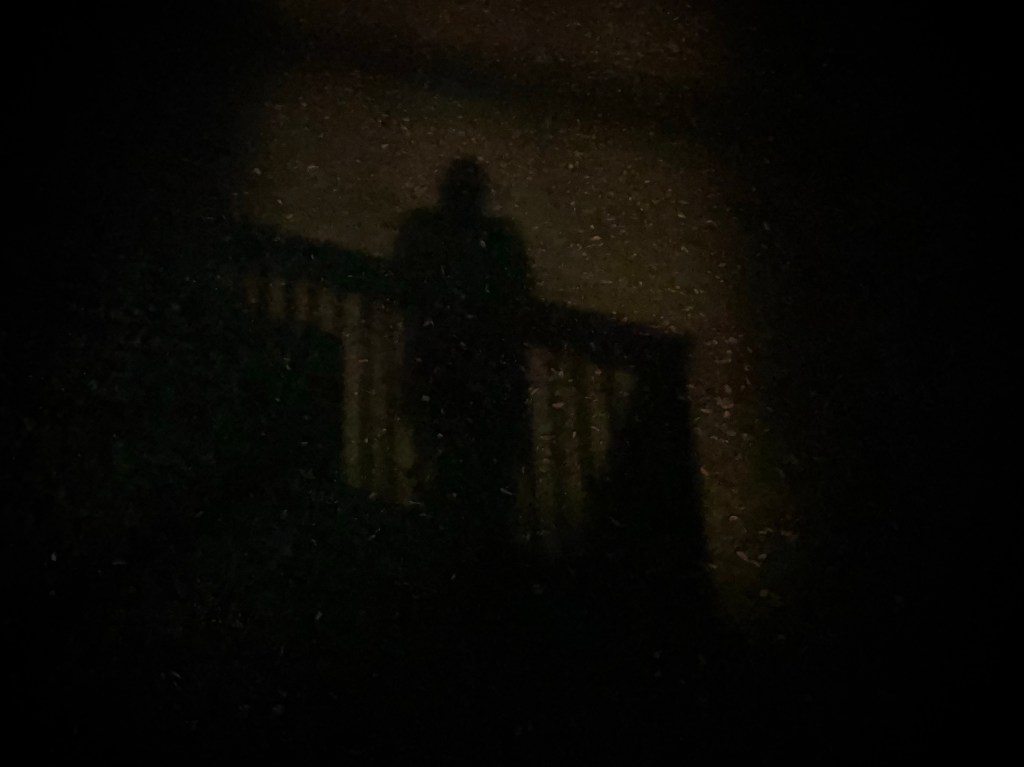 While getting some last minute fresh air on the back deck tonight after basketball practice one of lights in the house was turned on and caused this kind of neat shadow of myself looking over the deck to show up on the back lawn.