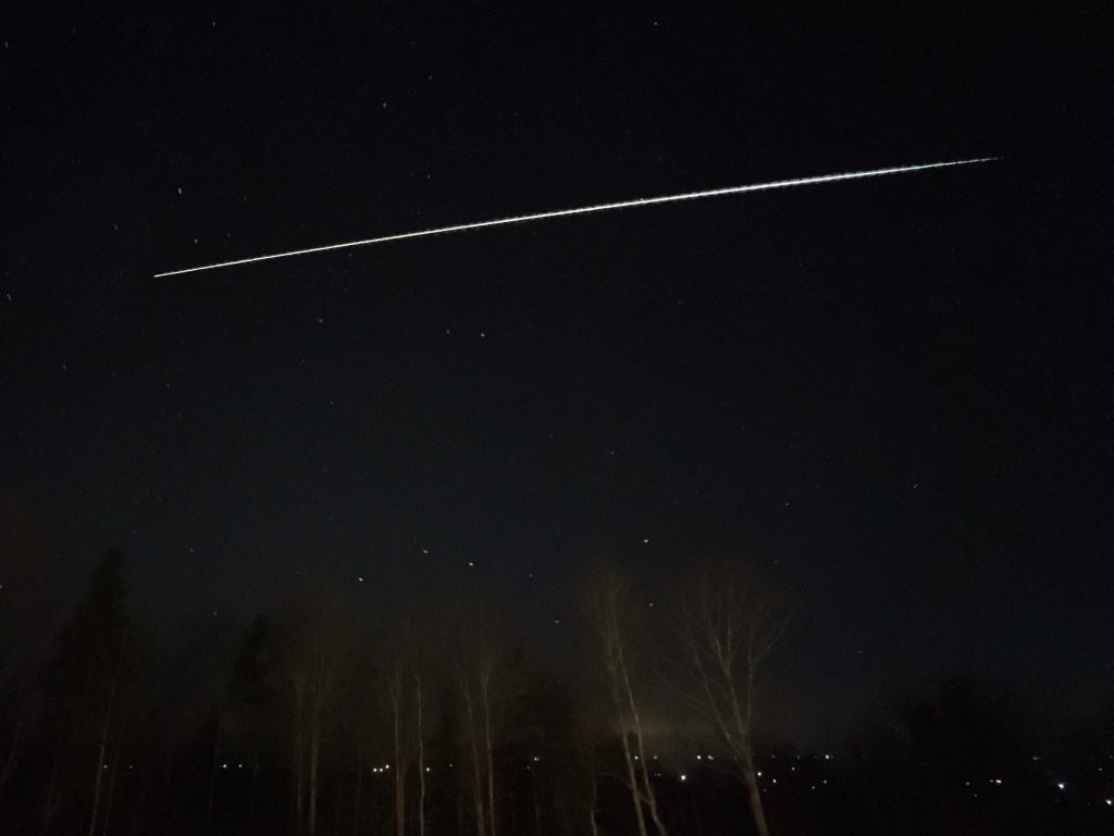 This was from last night off the back deck again. I’m really liking these night sky pictures. I was a little late getting the camera all set up so I missed some of the start of the track. It still turned out pretty good though catching the International Space Station traveling above the Big Dipper.