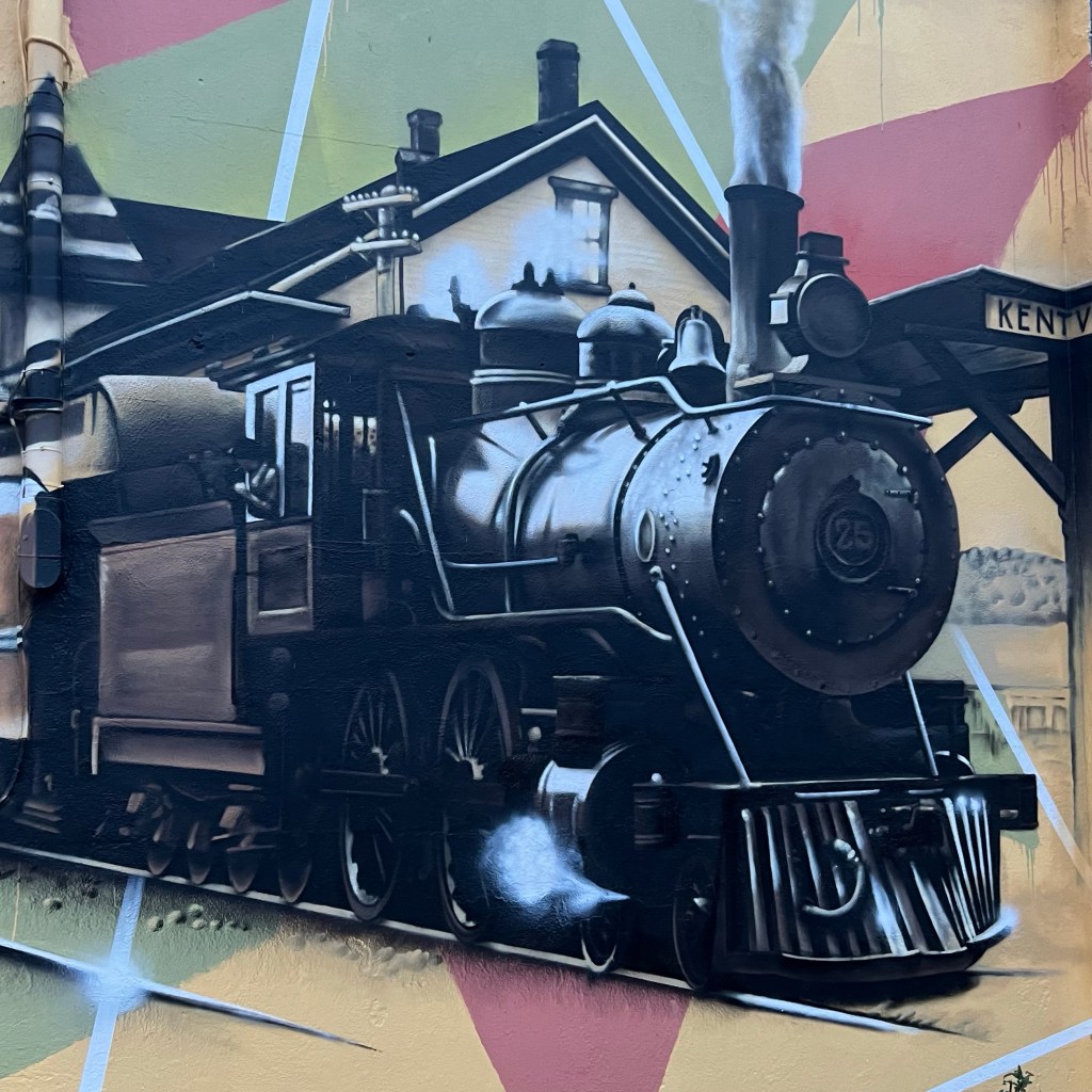 The train mural by @pekingdon is giving a nod to that part of the towns history.