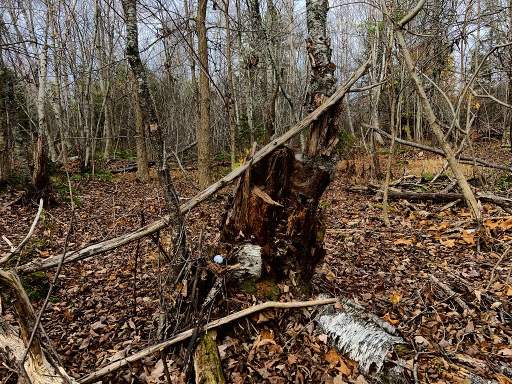 It looks like someone may have set it up here on this stump, but this trail doesn’t get a lot of traffic so I’m hoping and telling myself that it simply landed here on a little pedestal.