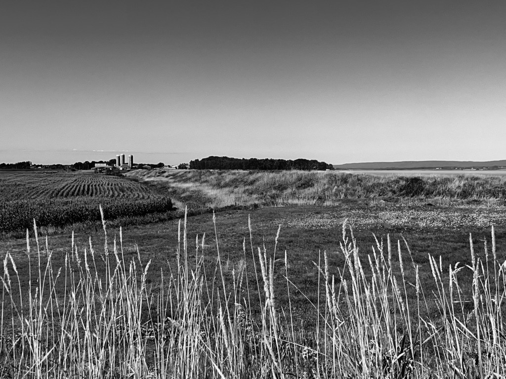 Took a good long bike ride which involved going along the dyke roads in Grand Pré. I really like this farm with the silos right along the Minas Basin.